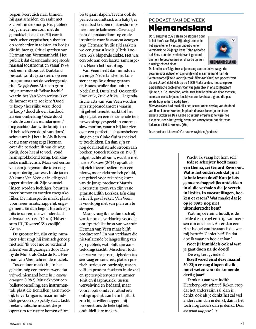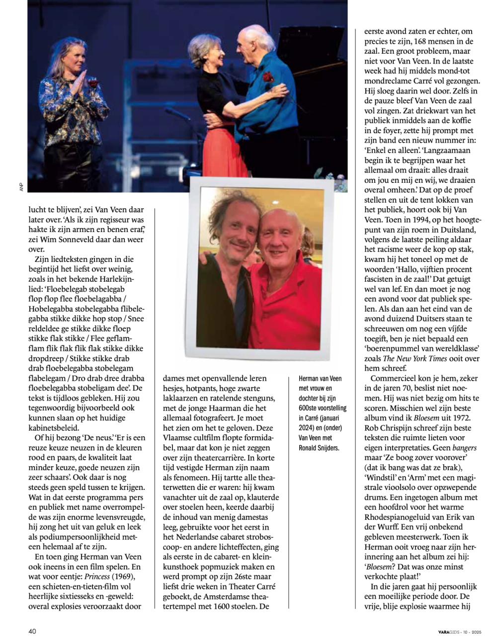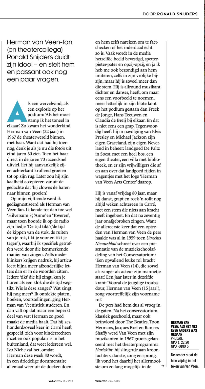 Ronald Snijders schreef i.v.m. Herman van Veens tachtigste verjaardag vandaag een spraakmakend artikel in de VARA Gids (klik op de plaatjes om te lezen):