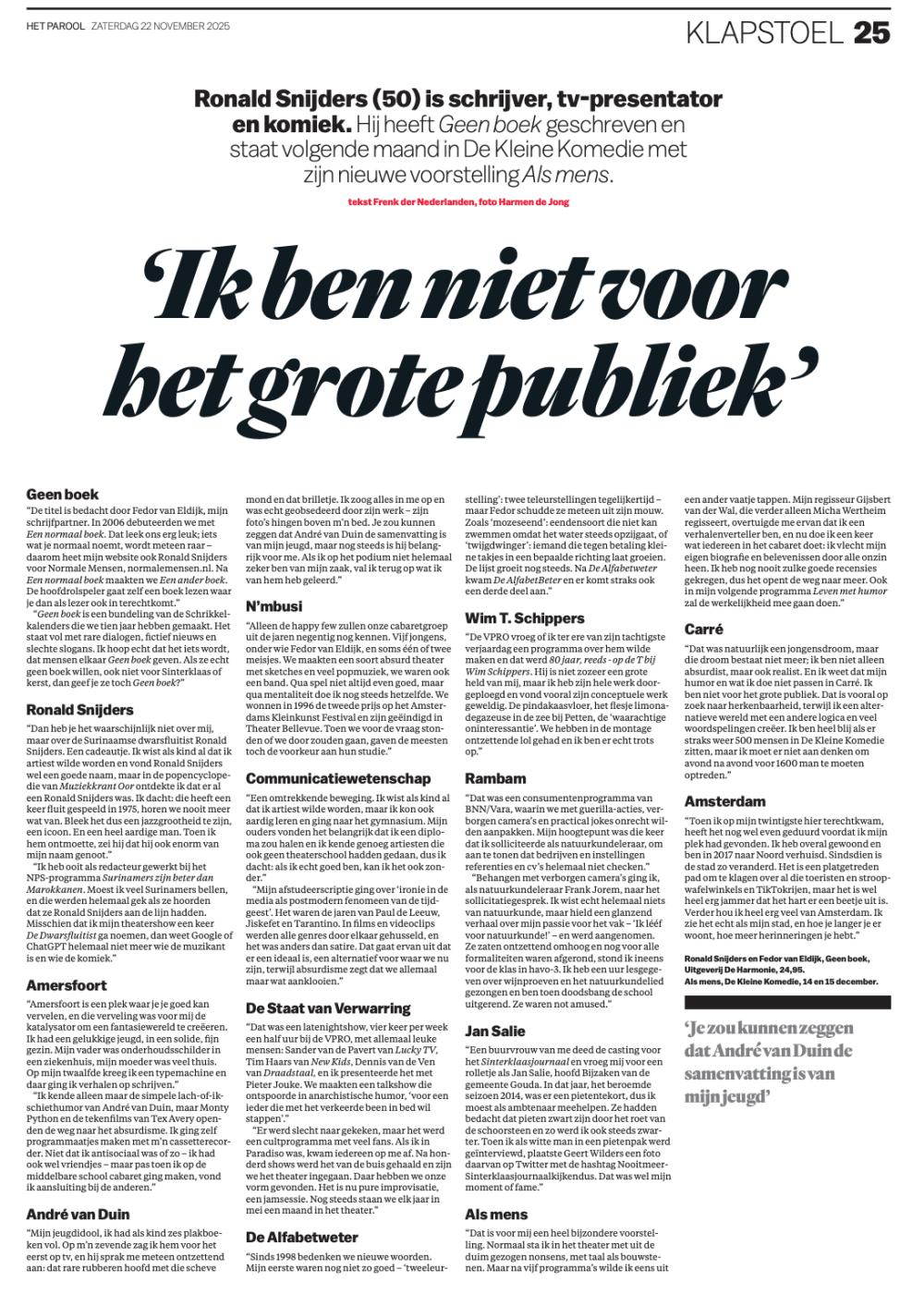 Ronald zat op de klapstoel in Het Parool, klik op de plaatjes om het te lezen: